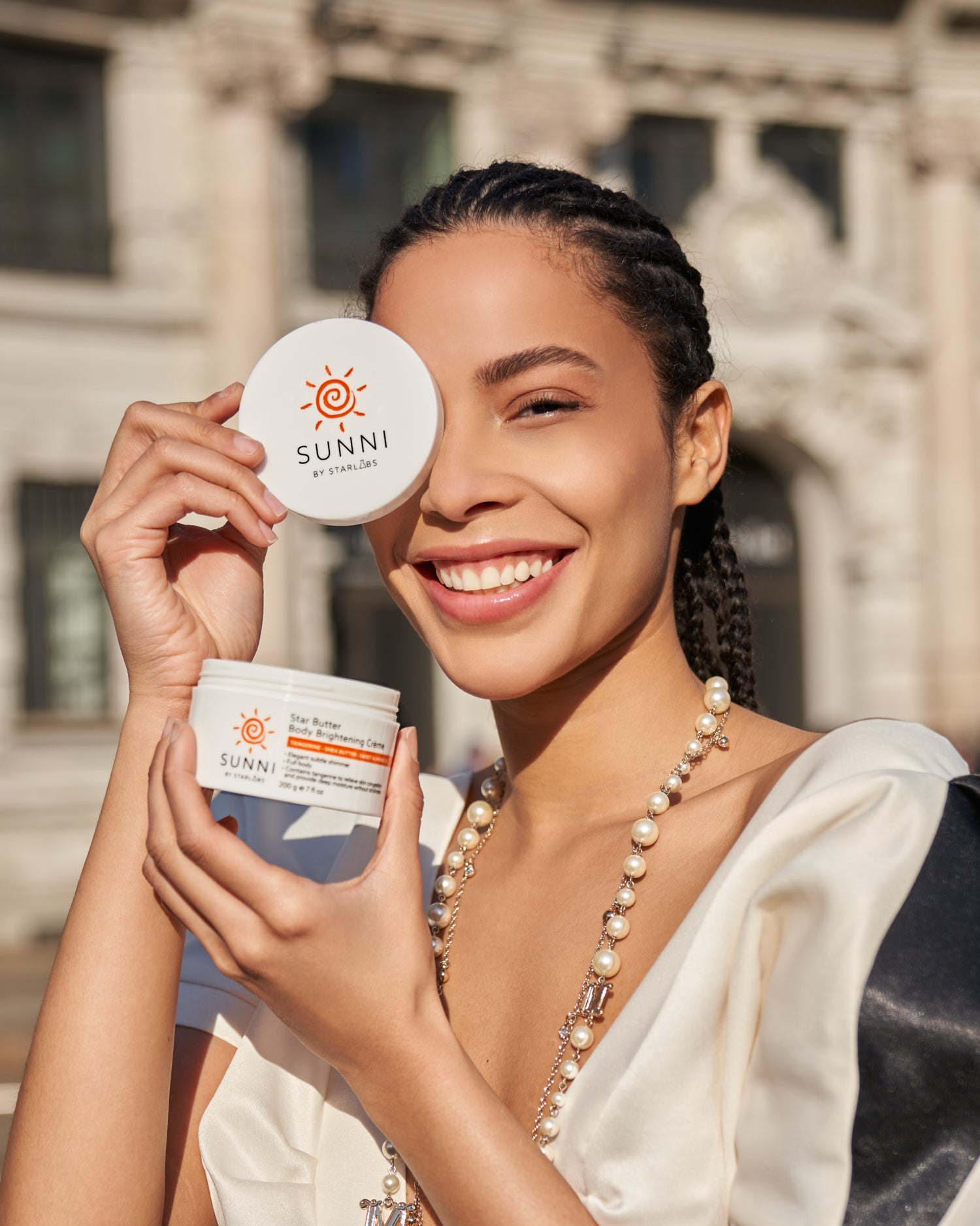 Whipped body butter creme with an elegant subtle shimmer, brightens, holds moisture and maintains elasticity of the skin.